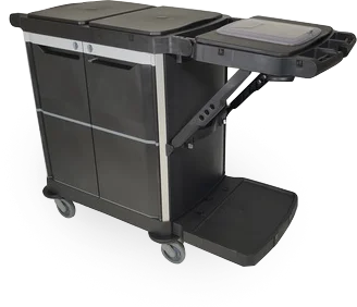 Een ergonomische, verstelbare werkkar, geschikt voor het efficiënt vervoeren van alle essentiële schoonmaakproducten en -accessoires.